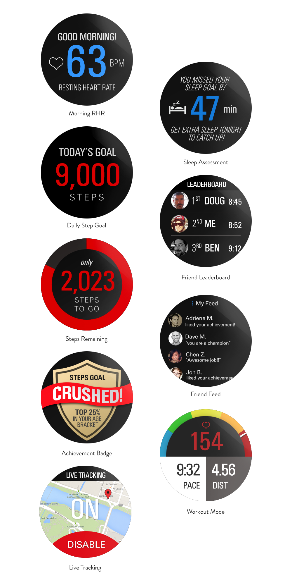 Design exploration for an Android watch app for Under Armour.